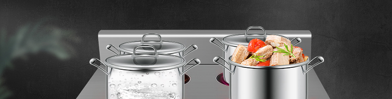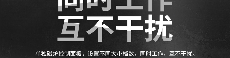 四頭柜式電磁爐,10檔調(diào)節(jié),滿足各種烹飪。3500W火力十足,輕松選擇合適火力。同時工作互不干擾單獨磁爐控制面板,設(shè)置不同大小檔數(shù),同時工作,互不干擾。