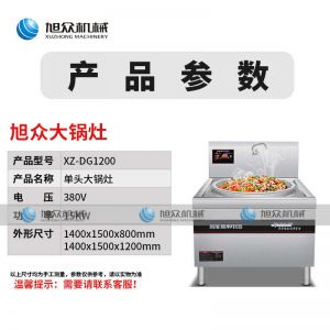 XZ-DG1200-大鍋灶,商用大鍋灶、猛火效率高。適用于酒店/食堂/工地炒菜,均勻翻炒,快速出菜工程可定制。勁爆翻炒快速出菜輕松解決百人用餐,人多也不怕。八檔磁控輕松控溫根據(jù)需求調(diào)節(jié),操作簡單,效率更出眾。