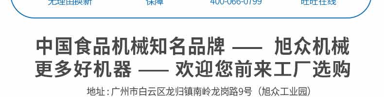 廣州旭眾食品機(jī)械有限公司是一家集科研開(kāi)發(fā),生產(chǎn)設(shè)計(jì),營(yíng)銷(xiāo)服務(wù)為一體的現(xiàn)代化生產(chǎn)企業(yè)。現(xiàn)代化生產(chǎn)車(chē)間,精湛制造技術(shù),所產(chǎn)機(jī)械歷經(jīng)市場(chǎng)重重考驗(yàn),不斷贏得海內(nèi)外客戶的贊譽(yù)。