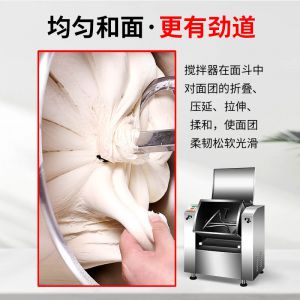 低噪音和面機(jī),利用攪拌器的轉(zhuǎn)動(dòng),使面粉和水在面斗中形成小顆粒,粘黏形成大面團(tuán)塊。大容量翻轉(zhuǎn)面斗,采用優(yōu)質(zhì)不銹鋼焊接制造,防腐蝕,食品接觸安全,符合食品生產(chǎn)安全標(biāo)準(zhǔn)。