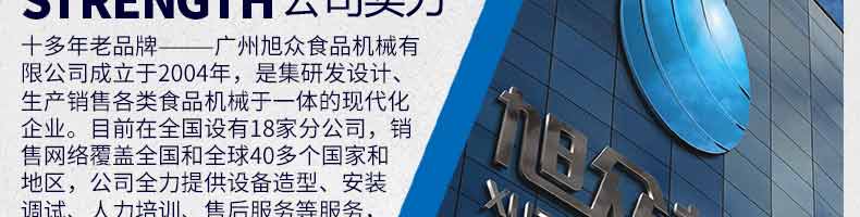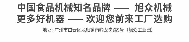 廣州旭眾食品機(jī)械有限公司是一家集科研開發(fā),生產(chǎn)設(shè)計(jì),營銷服務(wù)為一體的現(xiàn)代化生產(chǎn)企業(yè)?,F(xiàn)代化生產(chǎn)車間,精湛制造技術(shù),所產(chǎn)機(jī)械歷經(jīng)市場重重考驗(yàn),不斷贏得海內(nèi)外客戶的贊譽(yù)。