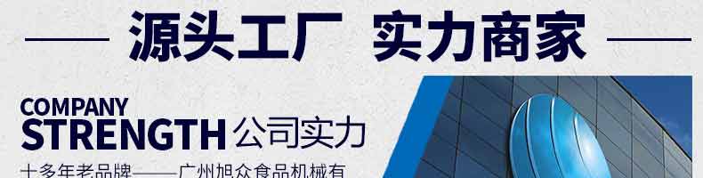 廣州旭眾食品機(jī)械有限公司是一家集科研開(kāi)發(fā),生產(chǎn)設(shè)計(jì),營(yíng)銷服務(wù)為一體的現(xiàn)代化生產(chǎn)企業(yè)?,F(xiàn)代化生產(chǎn)車間,精湛制造技術(shù),所產(chǎn)機(jī)械歷經(jīng)市場(chǎng)重重考驗(yàn),不斷贏得海內(nèi)外客戶的贊譽(yù)。