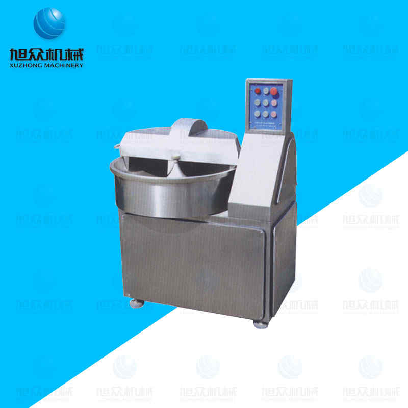 SZ-40型斬拌機,SZ-40型斬拌機是肉制品生產制工藝中的一個關鍵設備。它不僅能夠將肉塊、碎內人、脂肪主要原料精細地切碎,還能同時將其它原料如水、冰屑、調料、附加呂同肉末一起攪拌成均勻的乳狀物。根據(jù)不同的要求選擇適當?shù)霓D速與六組刀具相配合,可以縮短運行時間,減少物料發(fā)展量,可以保持餡料的天然色澤。