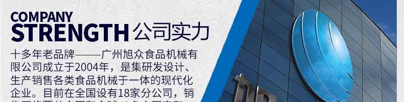 廣州旭眾食品機(jī)械有限公司是一家集科研開(kāi)發(fā),生產(chǎn)設(shè)計(jì),營(yíng)銷(xiāo)服務(wù)為一體的現(xiàn)代化生產(chǎn)企業(yè)。現(xiàn)代化生產(chǎn)車(chē)間,精湛制造技術(shù),所產(chǎn)機(jī)械歷經(jīng)市場(chǎng)重重考驗(yàn),不斷贏得海內(nèi)外客戶的贊譽(yù)。