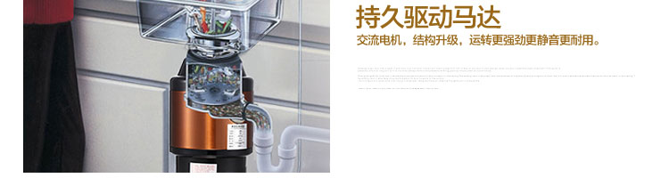 ACLQ56-廚房垃圾處理器,該機器是靠內部結構、零件組合達到處理垃圾的效果,通過碾、壓、擠、磨等系統(tǒng)的處理,在十幾秒內安全將食物垃圾處理成小于3毫米的顆粒,隨著水流排入下水道,使用十分安全。