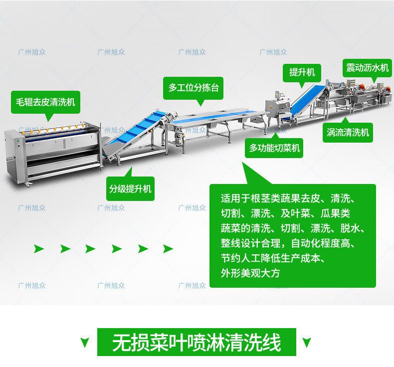 全自動大型葉菜清洗線,自動化程度高、整線設(shè)計合理、節(jié)約人工降低生產(chǎn)成本、外形美觀大方。主要用于葉菜加工,整線自動化凈菜生產(chǎn)此線將切割、清洗、風干設(shè)備連接成線,適合芹菜、韭菜菠菜、大白菜高麗菜、大蔥等葉菜類蔬菜加工生產(chǎn)