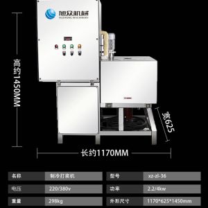 XZ-ZL-36制冷打漿機(jī),滿足大容量設(shè)計(jì),大容量桶不銹鋼刀俎、一次性可打漿530KG,加厚不銹鋼材。