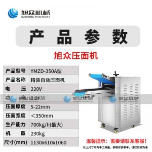 YMZD-350A自動壓面,商用全自動壓面機快速揉面,自動壓面包子餃子慢饅頭偭面館等場所適用不銹鋼機身厚薄可調(diào)、強勁動力??梢匝h(huán)壓面、揉面,模擬手工揉面,不破壞面筋,面皮的口感細膩。
